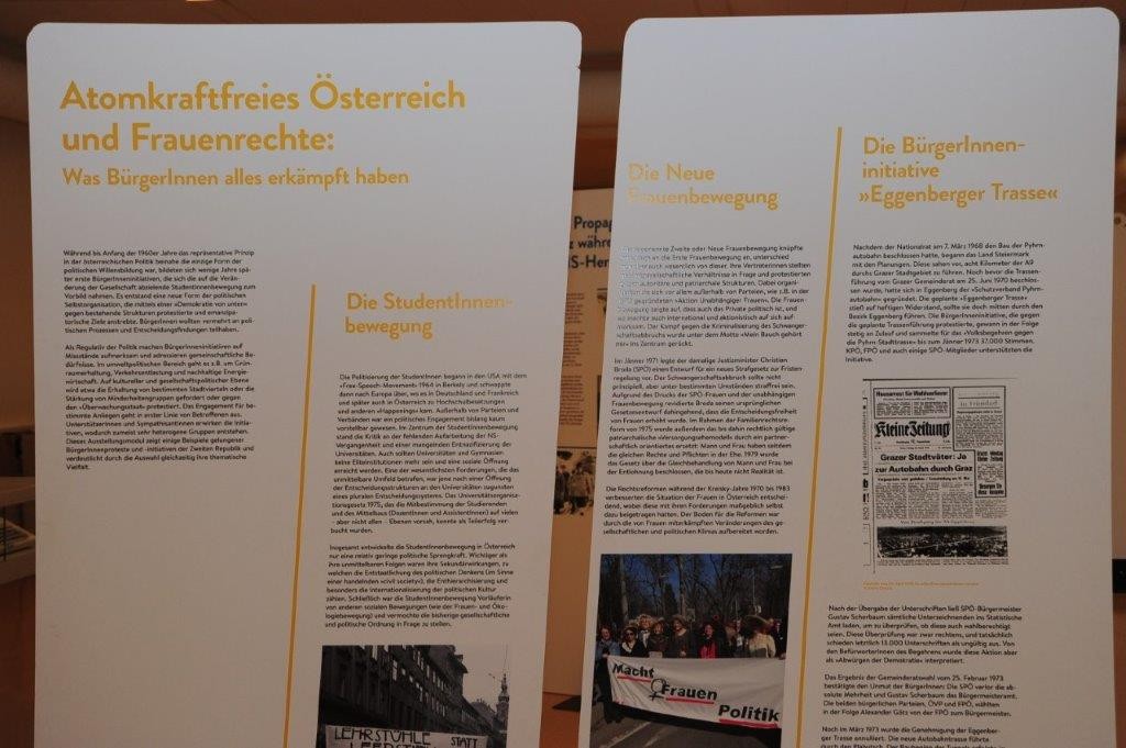 Den Startschuss machte eine – passenderweise genau am Internationalen Frauentag anberaumte – Pressekonferenz mit allen Beteiligten sowie die Eröffnung einer multimedialen Wanderausstellung, unter dem Titel „Im Zeitalter der Extreme – Demokratie im Widerstreit mit Diktaturen 1918/1928/1948/2018“ in der HTL Zeltweg. Diese wurde von der ARGE Jugend gegen Gewalt und Rassismus in Zusammenarbeit mit dem Bildungsressort des Landes Steiermark entwickelt und thematisiert die demokratiepolitisch bedeutsamen Entwicklungen der jüngeren Geschichte. Zentrales Anliegen ist die Vermittlung von Demokratie als einen gesellschaftspolitischen Wert, der hart erkämpft werden musste und keineswegs selbstverständlich ist.