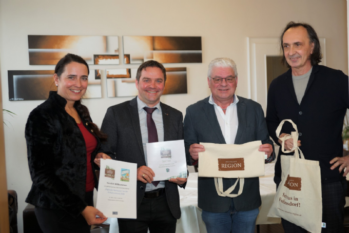 Dr. Christina Mandl, Bgm. Günter Reichhold, Bgm. Hannes Dolleschall und GF Gerolf Wicher (v. l.)