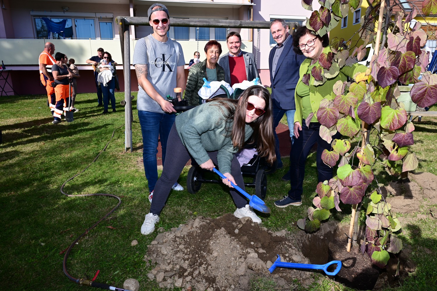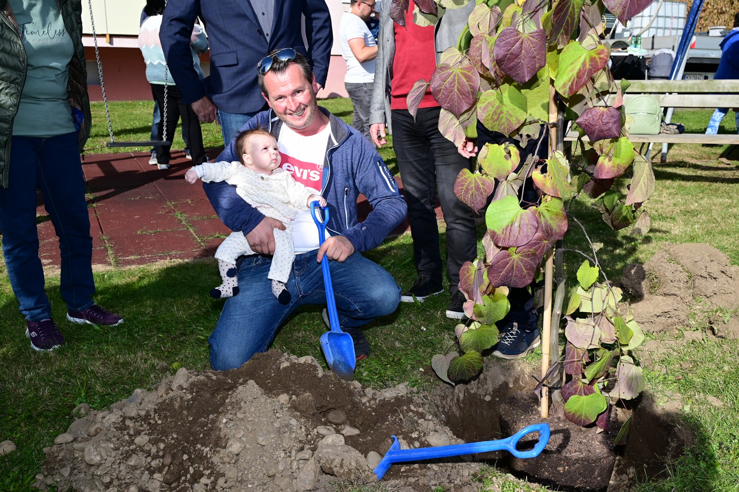 Mit kräftiger Unterstützung der Eltern, Bürgermeister Günter Reichhold, 2. Vizebürgermeister Ing. Siegfried Traffler und weiteren Vertreterinnen und Vertretern aus Politik und Stadtverwaltung wurde der Baum feierlich eingepflanzt. Anschließend klang die Baumsetzaktion 2025 bei einem gemütlichen Beisammensein mit Getränken und belegten Brötchen stimmungsvoll aus.