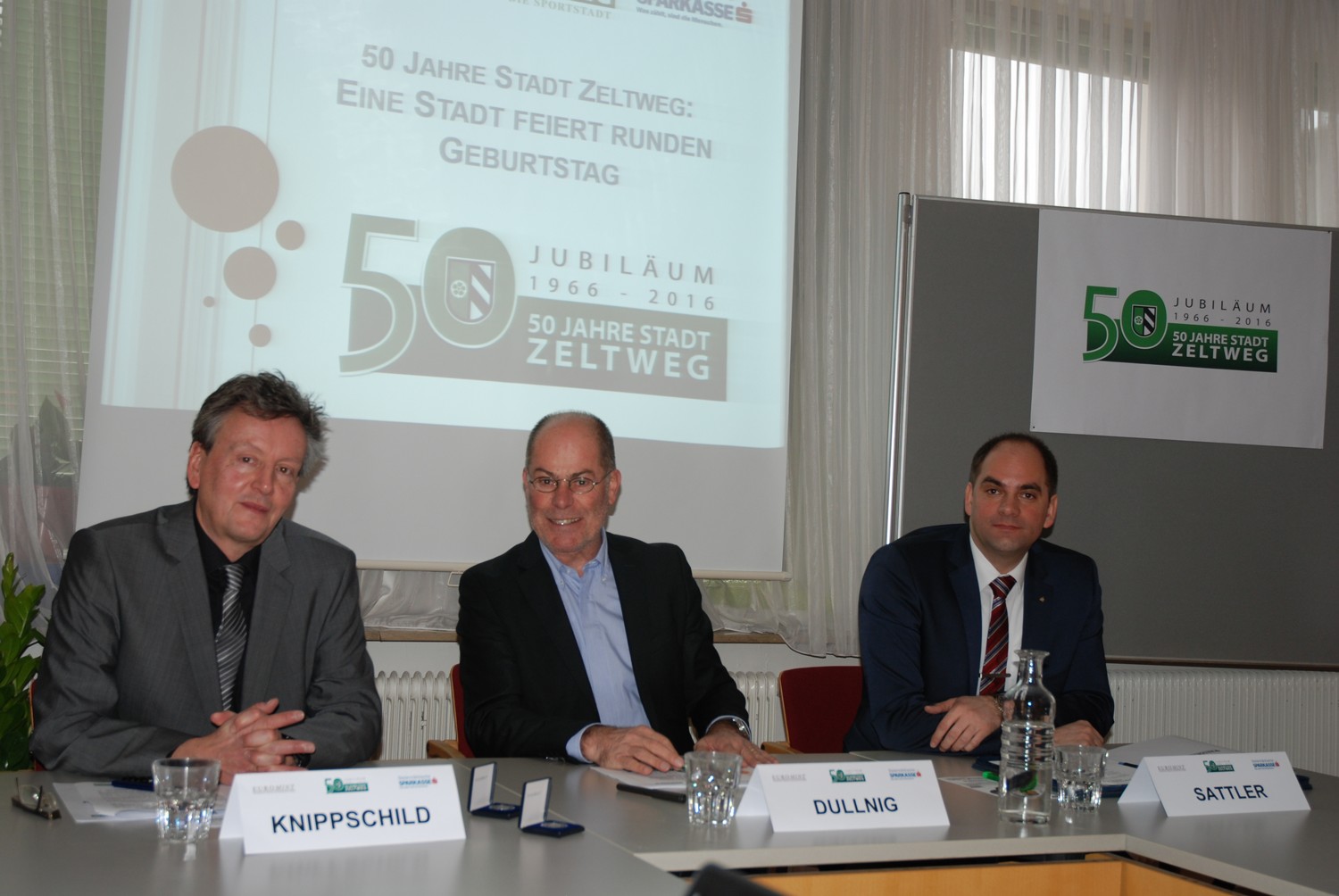Gemeinsam mit der Bevölkerung, Vereinen und Institutionen sollen das ganze Jahr über Veranstaltungen und Projekte zum Thema „50 Jahre Stadt Zeltweg“ angeboten werden. Am 29. Februar 2016 erläuterte Bürgermeister Hermann Dullnig im Rahmen einer Pressekonferenz die von der Stadtgemeinde Zeltweg geplanten Feierlichkeiten in diesem Jahr und stellte gemeinsam mit Michael Knippschild von der EuroMint GmbH aus Bochum und Engelbert Sattler, dem Leiter der Zeltweger Filiale der Steiermärkischen Bank und Sparkassen AG, die streng limitierte Sonderprägung zum 50-jährigen Jubiläum der Stadterhebung vor.