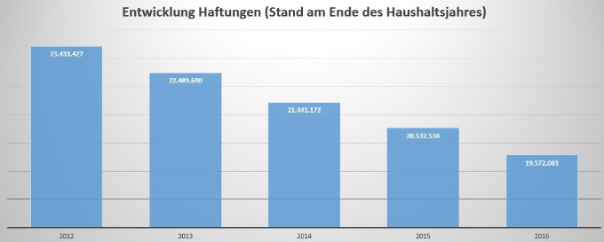 Hinsichtlich der Haftungen ist es gelungen, seit 2012 eine Reduktion um rund 3,8 Millionen Euro zu erzielen.