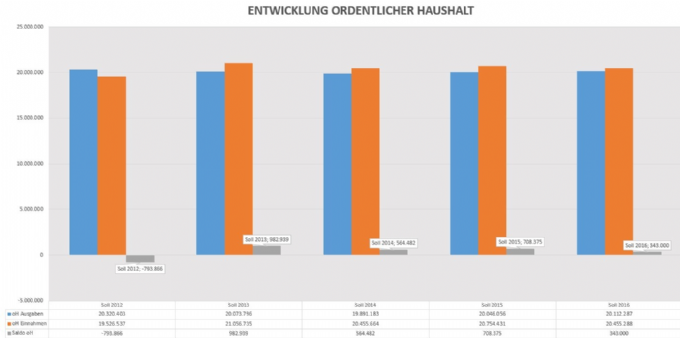 Seit dem Rechnungsjahr 2013 konnten fortwährend Überschüsse im ordentlichen Haushalt erwirtschaftet werden.